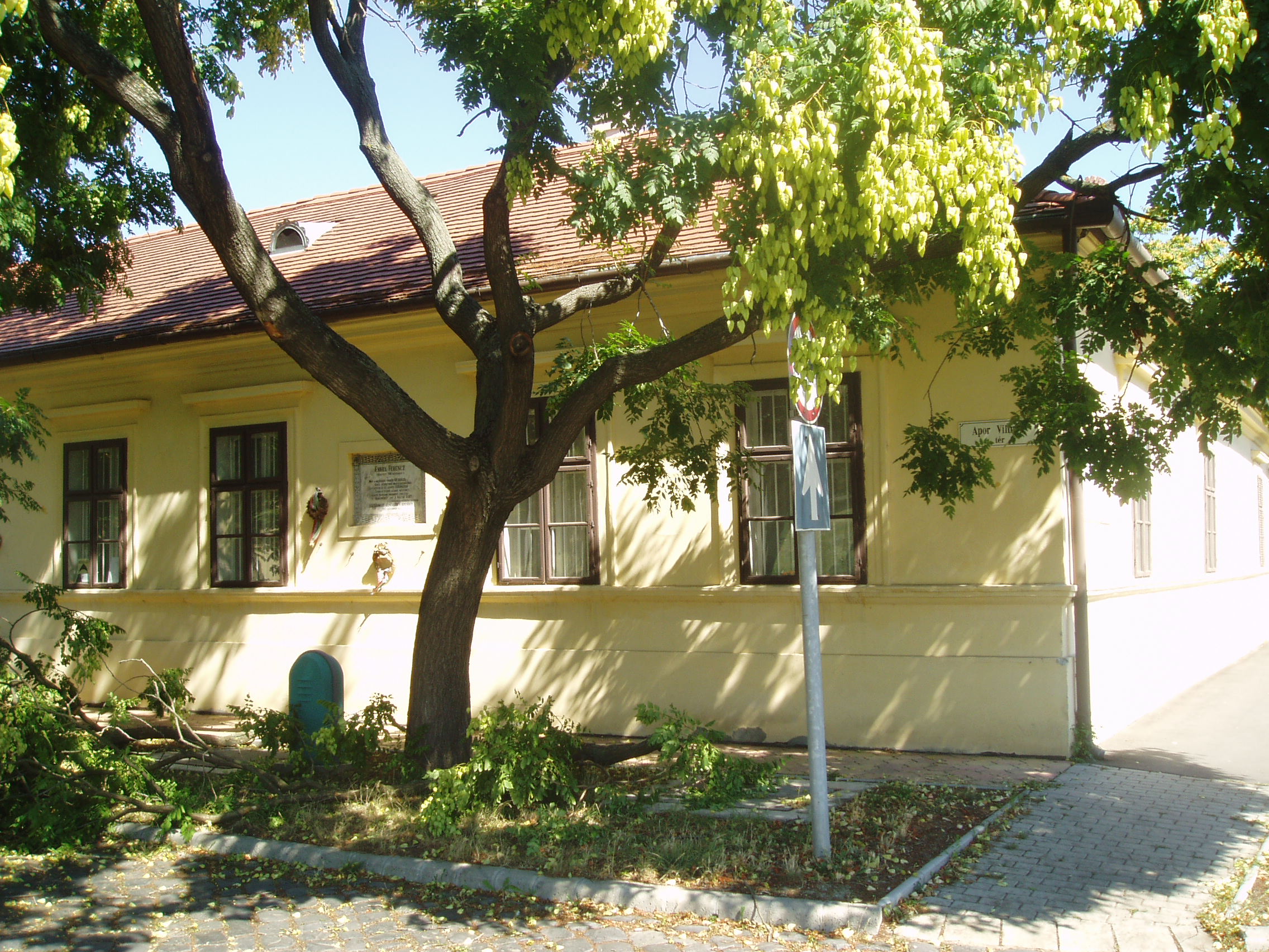 Nyilvános 1473 | 3041 | Gyula, Apor tér 7. Erkel Ferenc szülőháza | A földszintes, klasszicista jellegű németgyulai iskola és kántortanítói lakás 1795-ben épült. Az L alakú épület Apor térre néző szárnya volt az iskola, a Dürer utcára néző pedig a tanítói lakás, melynek ablakai közül kettő a térre néz. Ebben a házban született 1810. november 7-én Erkel Ferenc a németgyulai tanító fiaként, s testvéreivel együtt itt nevelkedett szeretetteljes családi légkörben. Első zenei tanítója remekül muzsikáló édesapja volt. Már néhány héttel Erkel halála után, 1893. július 5-én a házat emléktáblával jelölték meg, amelyet 1910-ben, születésének centenáriumán a most is látható díszesebbre cserélték. A korábbi tantermek helyén először 1960-ban rendeztek kiállítást, majd 1970-ben nyílt meg az Erkel Ferenc Emlékmúzeum. 1985-ben kibővítették, múzeumnak rendezték be az eredeti tanítói lakás helyiségeit is, köztük azt a sarokszobát, amelyben Erkel született. Az Emlékház gyűjteményében megtekinthetőek az Erkel család relikviái, s itteni életkörülményeikbe is bepillanthat a látogató. A fénykép 2007 júliusában készült. Felh. irod.: Czeglédi Imre: Gyula útikalauz. 2. bőv. kiad. Gyula, 1995 Czeglédi Imre: Erkel Ferenc Emlékház /Tájak, korok, múzeumok 238./ Németh Csaba: A gyulai Erkel Ferenc Múzeum Erkel–gyűjteménye. Gyula, 2007. /Gyulai katalógusok 12./ |
