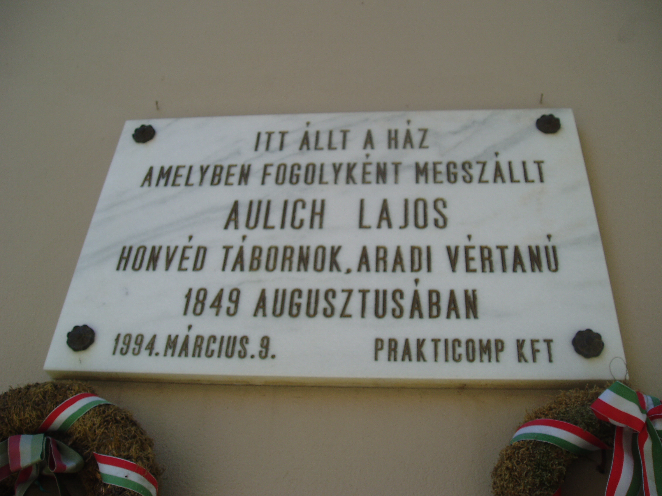 Nyilvános 1045 | 1507 | Gyula, Városház utca 23. | A lakóházat 1994-ben eredeti formájában építették újjá. 1849 augusztusában itt szállt meg Aulich Lajos honvéd tábornok. A szabadságharc tragikus gyulai eseményét lásd: Gyula, Várkert: Honvédtiszti emlékhely. A fénykép 2007 júliusában készült. Felh. irod.: Czeglédi Imre: Gyula útikalauz. 2. jav., bőv. kiad. Gyula, 1995 |
