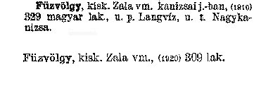 Nyilvános 2256 | 6148 | Füzvölgy kisk. Zala vm. kanizsai j. -ban, (1910) 329 magyar lak., u. p. Langvíz, u. t. Nagykanizsa. Füzvölgy kisk. Zala vm., (1920) 309 lak Cím: Révai nagy lexikona Alcím: az ismeretek enciklopédiája Kiadás: Budapest : Révai testvérek, [1911]- Kötetei: 1. köt., A - Arany 2. köt., Arány - Beke 3. köt., Béke - Brutto 4. köt., Bratus - Csát 5. köt., Csata - Duc 6. köt., Duc - Etele 7. köt., Stelka - Földöv 8. köt., Földpálya - Gres 9. köt., Gréc - Herold 10. köt., Hérold - Jób 11. köt., Jób - Nontur 12. köt., Kontúr - Lovas 13. köt., Lovas - Mons 14. köt., Mens - Ottó 15. köt., Ottó - Racine 16. köt., Racine - Sodoma 17. köt., Sodoma - Tarján 18. köt., 19. köt., Vár - Zsüri | Kiegészítés Aachen - Beöthy 20. köt., Kiegészítés: Bér - Zsolt ETO jelzet: 03=945.11 Szakjelzet: 030 Cutter: R 62 Nyelv: magyar |