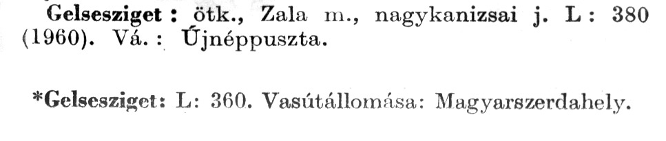 Nyilvános 2189 | 5949 | A szócikkek felismertetett szövege: | (A csillag után az 1972-es kiadású kiegészítő kötetből származó szöveg következik) Gelsesziget: ötk., Zala m., nagykanizsai j. L : 380 (1960). Vá. : Újnéppuszta. *Gelsesziget: L: 360. Vasútállomása: Magyarszerdahely. A szócikkek a következő lexikonból származnak: Cím: Új magyar lexikon Közreműködő: Berei Andor (1900-1979) (szerk.) Szerz. közl.: [szerk. Berei Andor et al.] Kiadás jelzés: 2. lny. Kiadás: Budapest : Akad. K., 1961-1962 Kötetei: 1., A - C 2., D - F 3., G - J 4., K - Me 5., Mf - R 6., S - Z 7. köt., A-Z Kiegészítő kötet (1972) Kiegészítő kötet, 1962÷1980 (1981) ETO jelzet: 03=945.11 Szakjelzet: 030 Cutter: U 28 Nyelv: magyar Megjegyzés: Bibliogr. a címszavak egy részének végén |