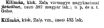 Kilimán kisk. Zala vármegye nagykanizsai járásában, (19 ... | 25.5 KB | 2008-03-11 09:56:35 | |||