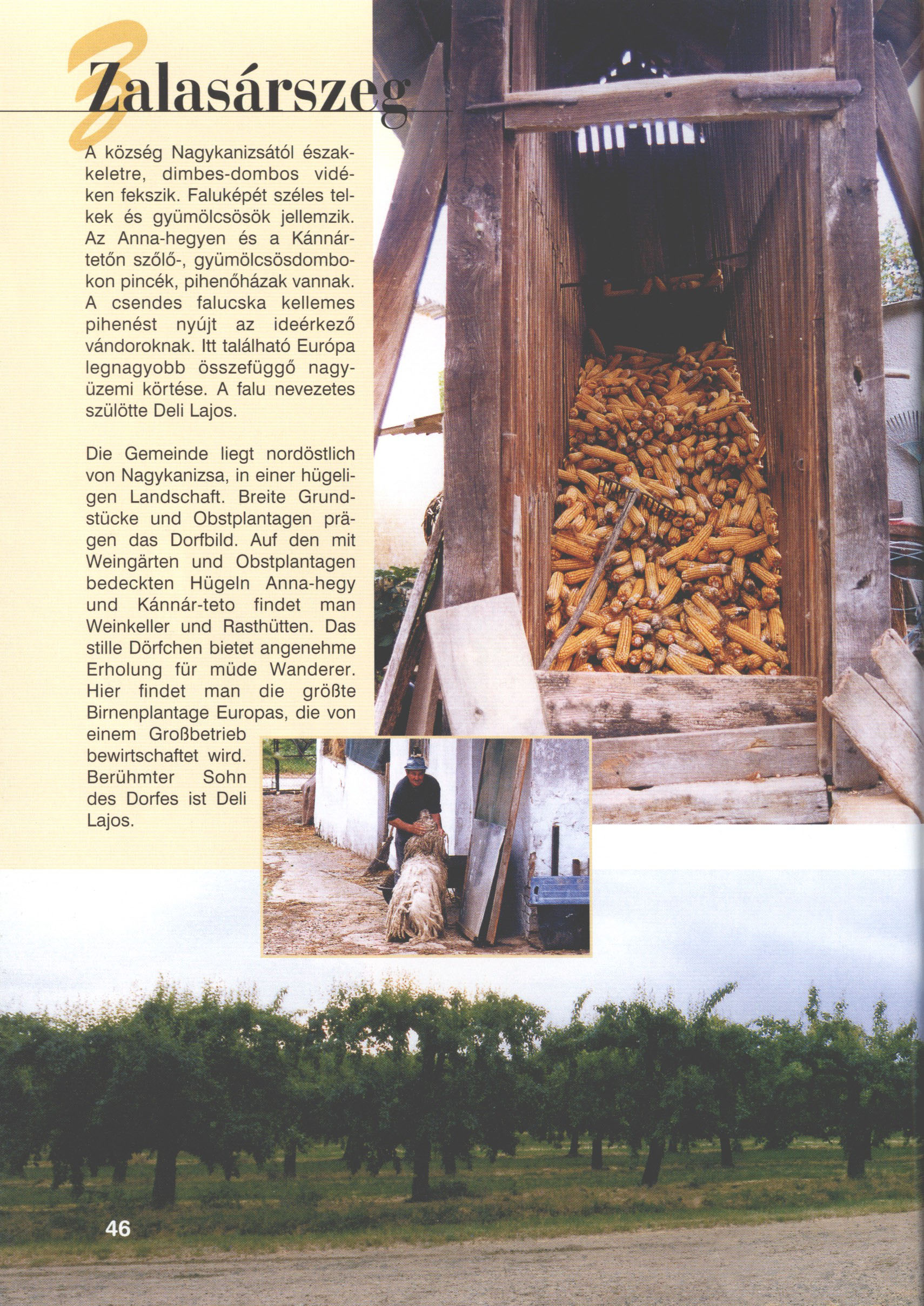 Nyilvános 2238 | 5913 | Zalasárszeg | Die Gemeinde liegt nordöstlich von Nagykanizsa, in einer hügeligen Landschaft. Breite Grundstücke und Obstplantagen prägen das Dorfbild. Auf den mit Weingärten und Obstplantagen bedeckten Hügeln Anna-hegy und Kánnár-tető findet man Weinkeller und Rasthütten. Das stille Dörfchen bietet angenehme Erholung für müde Wanderer. Hier findet man die größte Birnenplantage Europas, die von einem Großbetrieb bewirtschaftet wird. Berühmter Sohn des Dorfes ist Deli Lajos. Dieses Text stammt von: Titel: Hívogató a Régiók Kapujában - Útikönyv Látnivalók Nagykanizsán és Térségében (Einladend in dem Tor des Gebiets - Reisebuch - Sehenswürdigkeiten in Nagykanizsa und Umgebung) Herausgegeben von: Nagykanizsa és a Környező Települések Területfejlesztési Társulása (Verein für Gebietsentwicklung in Nagykanizsa und in ihrer Umgebung) 8800 Nagykanizsa, Petőfi Sándor út 5. Tel.: 06 93/536-453 • 06 93/536-454 Tel ./Fax: 06 93/326-323 E-mail: terstars@axelero.hu www.kanizsaterseg.celodin.hu |