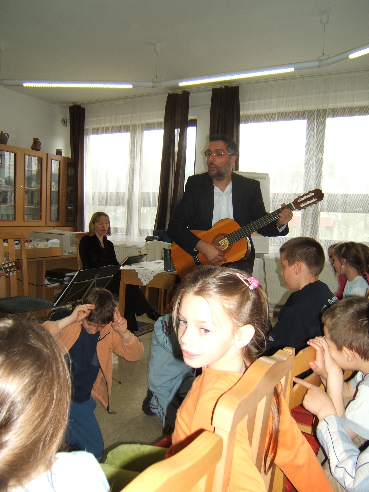Nyilvános 1500 | 3526 | Költészet napja műsor a zalakarosi könyvtárban 2006. április 11-én. Vendégünk volt a Kardos Banda együttes, aki a kisiskolásoknak és a nagyoknak külön összeálított \"Költészet - minden formában régiektől, maiaktól\" című műsorát adta elő. | |