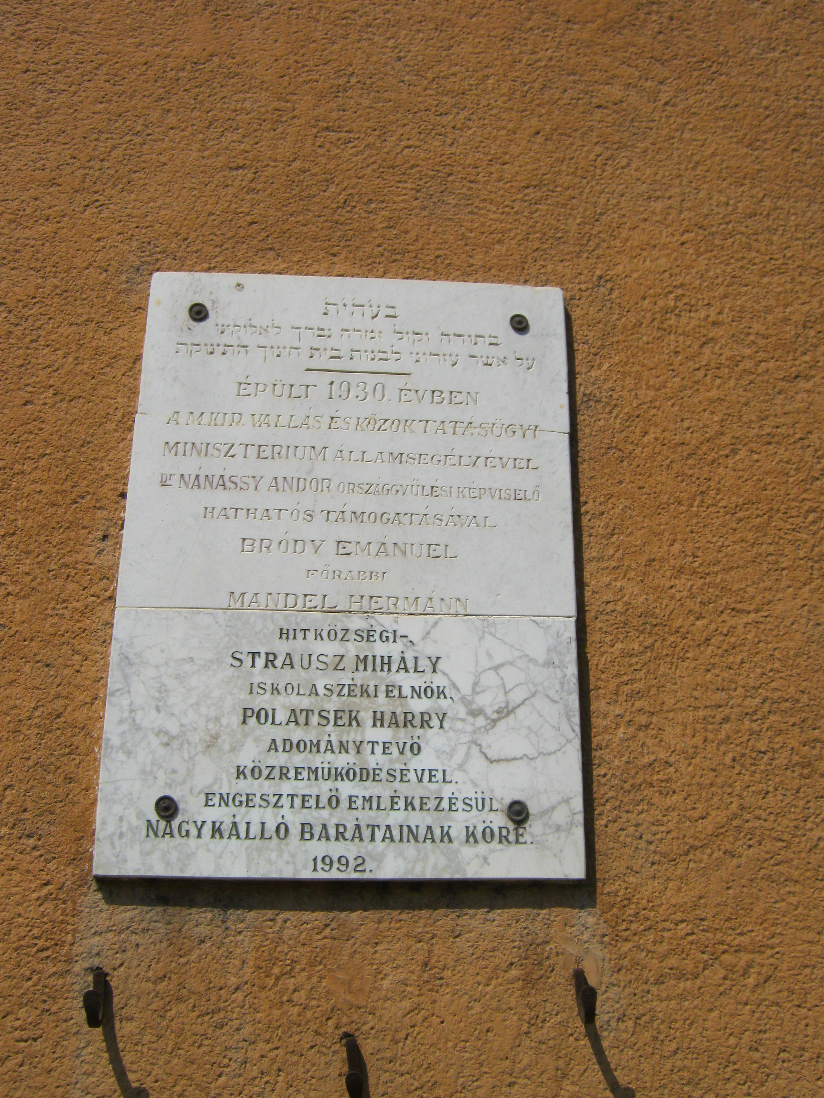 Nyilvános 1076 | 1450 | Nagykálló, Nagybalkányi út 7. | Az egykori Izraelita iskola 1930-ban közadakozásból épült. Létesítéséhez anyagilag jelentősen hozzájárult Pollatsek Harry Amerikába vándorolt kállói ügyvéd. 1944-ben itt alakították ki a gettót, innen hurcolták el a kállói zsidóság nagy részét. Felh. irod.: Harsányi Gézáné: Kálló kincsei. Nagykálló, 2007 A fénykép 2010 augusztus elején készült. |