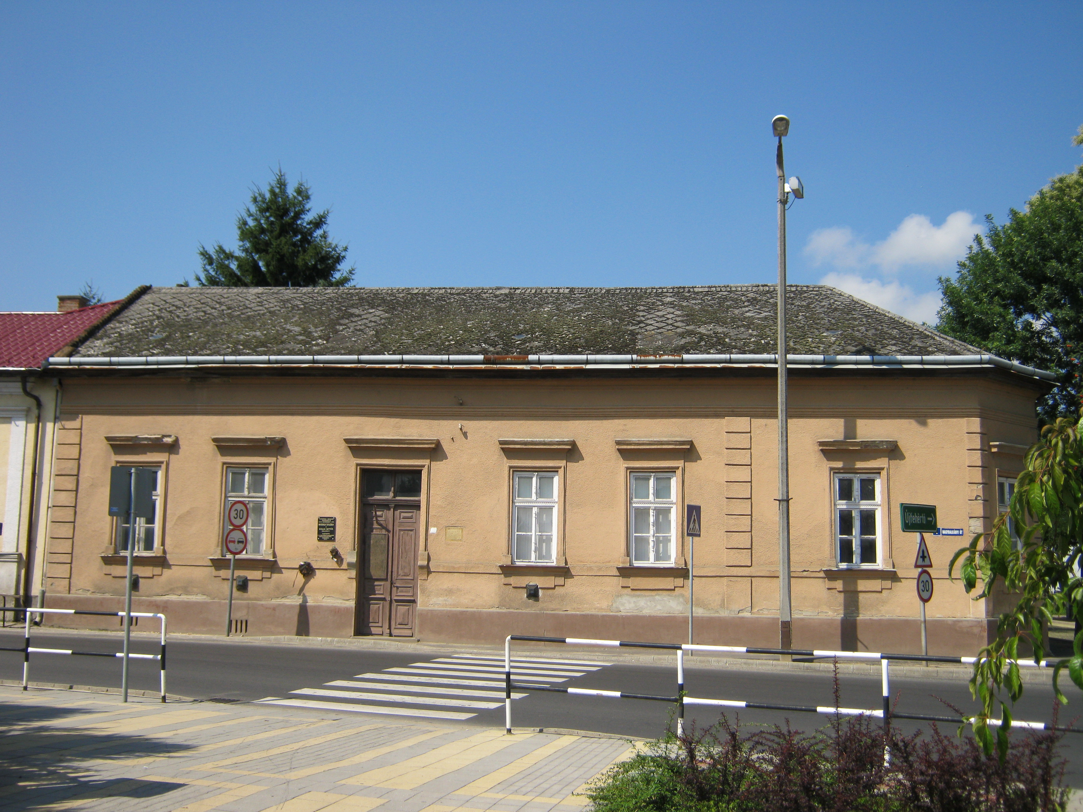 Nyilvános 1420 | 2891 | Nagykálló, Nagybalkányi út 1. | A református templom háta mögött áll a parókia földszintes otthona, ami ma lakatlannak tűnik. Homlokzatán emléktábla jelzi, hogy 1926. november 7-én Kodály Zoltán itt jegyezte le a "Kállai kettős" dallamait. Az akkori református lelkész, ifj. Görömbey Péter látta vendégül. A középkori eredetű páros tánc népi formájában ma is él Nagykálló művészeti együtteseinek köszönhetően, Kodály Zoltán által negyedszázaddal később feldolgozott változata pedig a Magyar Állami Népi Együttes előadásában az egész világon ismertté tette Nagykálló nevét. Érdemes a ház kapcsán megemlékezni id. és ifj. Görömbey Péterről. Az apa 1876-tól 43 éven át volt a nagykállói reformátusok lelkésze, s jelentős egyházi szakírói tevékenységet fejtett ki. Ifj. Görömbey Péter atyja nyomdokait követő, rendkívüli műveltségű, hét nyelven beszélő lelkész és tanár volt. Jó barátságban állt Móricz Zsigmonddal, aki róla mintázta Fáklya című regényének főhősét. Felh. irod.: Harsányi Gézáné: Kálló kincsei. Nagykálló, 2007 A fénykép 2010 augusztus elején készült. |