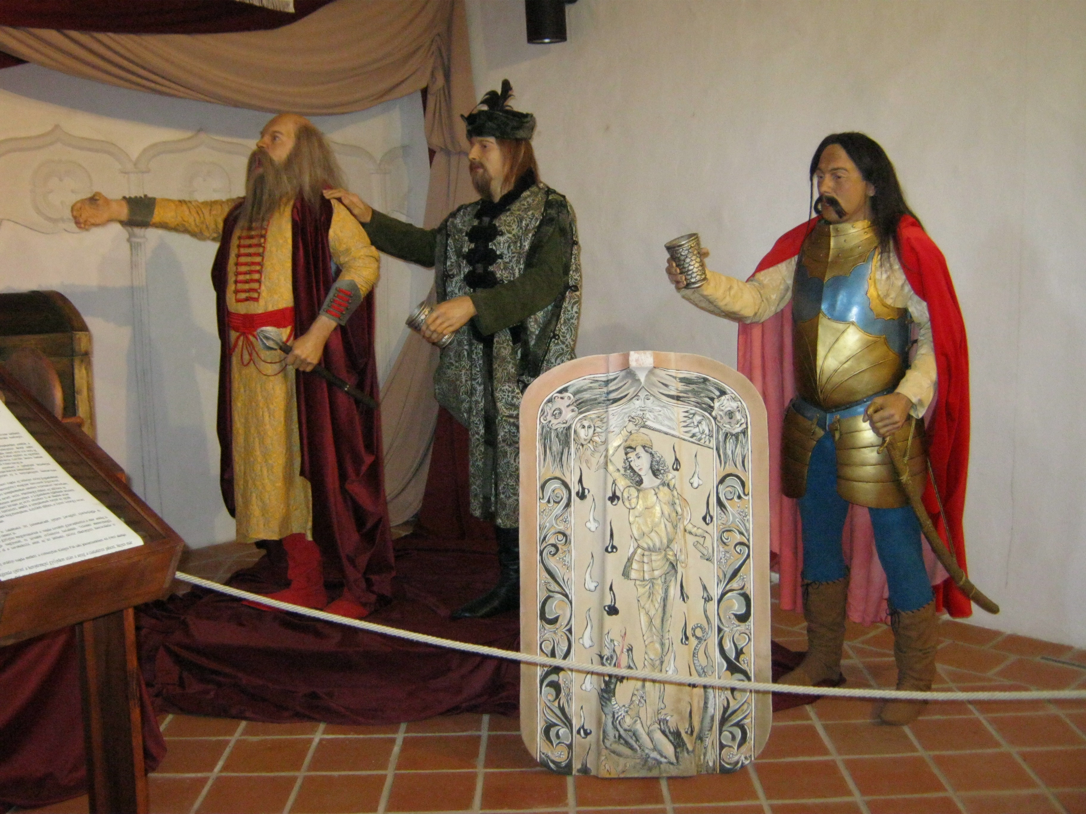 Nyilvános 1054 | 1786 | Nyírbátor, Vár utca 1. Báthori várkastély | A Báthoriak várkastélyának többször átalakított egyetlen megmaradt épületét a közelmúltban állították helyre. Pincéjében reneszánsz étterem látogatható, földszintjén és emeletén a Báthori Panoptikum 45 élethű és korhű viaszfigurában mutatja be érzékletesen a jeles nemesi család és Nyírbátor történetét. A figurák tervezője és készítője Megyeri János szobrászművész. A megtekintést olvasható és hallgatható kalauzolás kíséri. A kiállítást a kenyérmezei csata 530. évfordulóján, 2009.október 13-án adták át. Az 1479-ben a törökkel vívott csata egyik hőse Báthori István volt. A képen Nyírbátor történetének egy újabb jelentős pillanata, az 1549-ben a várban megkötött Nyírbátori egyezmény jelenete. Felh. irod.: Látnivalók Szabolcs-Szatmár-Bereg megyében. Miskolc, Well-PRess, 1999 www.bathorivarkastely.hu A fénykép 2010 augusztus elején készült. |