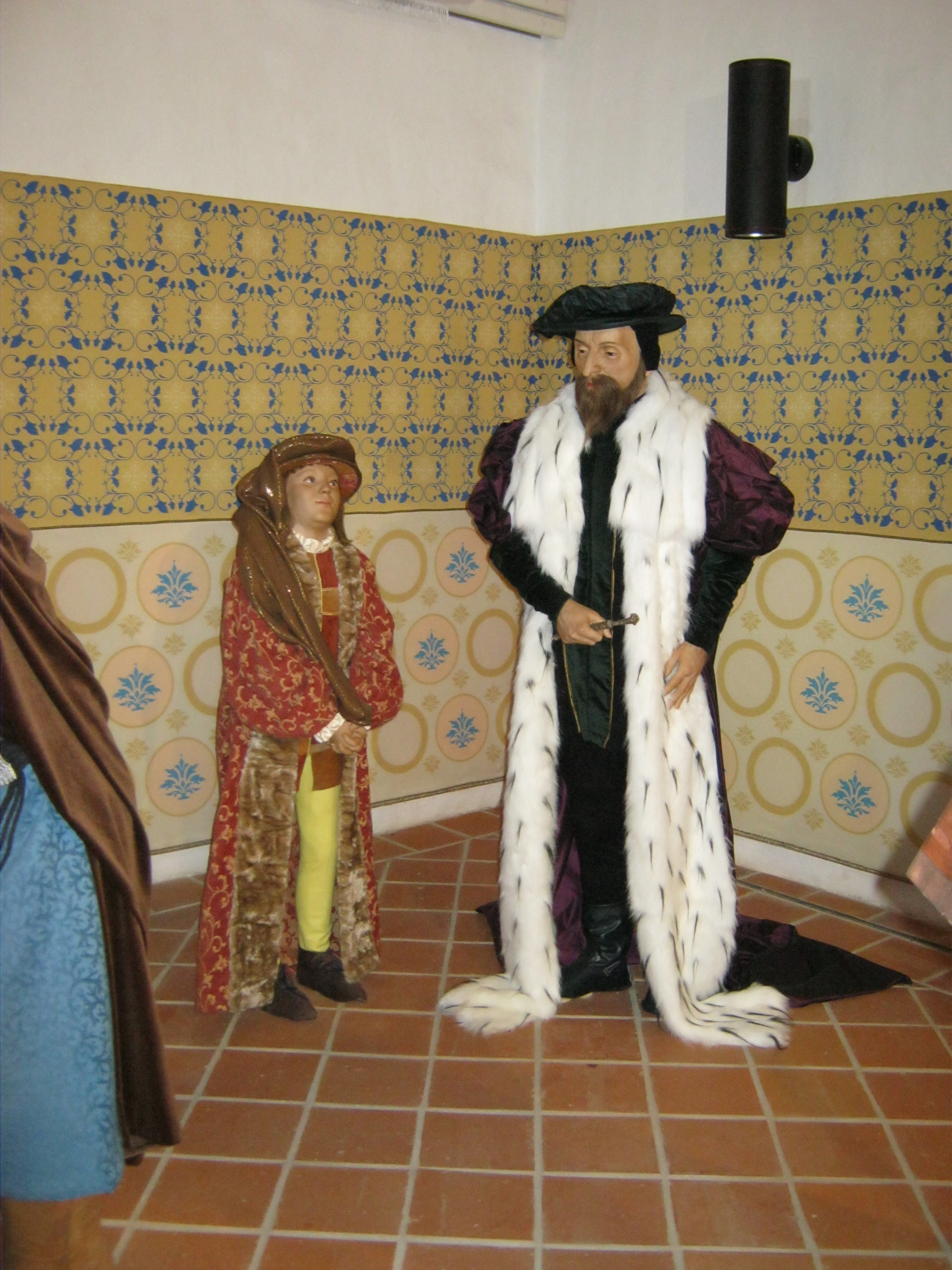 Nyilvános 999 | 1406 | Nyírbátor, Vár utca 1. Báthori várkastély | A Báthoriak várkastélyának többször átalakított egyetlen megmaradt épületét a közelmúltban állították helyre. Pincéjében reneszánsz étterem látogatható, földszintjén és emeletén a Báthori Panoptikum 45 élethű és korhű viaszfigurában mutatja be érzékletesen a jeles nemesi család és Nyírbátor történetét. A figurák tervezője és készítője Megyeri János szobrászművész. A megtekintést olvasható és hallgatható kalauzolás kíséri. A kiállítást a kenyérmezei csata 530. évfordulóján, 2009.október 13-án adták át. Az 1479-ben a törökkel vívott csata egyik hőse Báthori István volt. A képen a kis János Zsigmond és I. Ferdinánd király figurái. Felh. irod.: Látnivalók Szabolcs-Szatmár-Bereg megyében. Miskolc, Well-PRess, 1999 www.bathorivarkastely.hu A fénykép 2010 augusztus elején készült. |