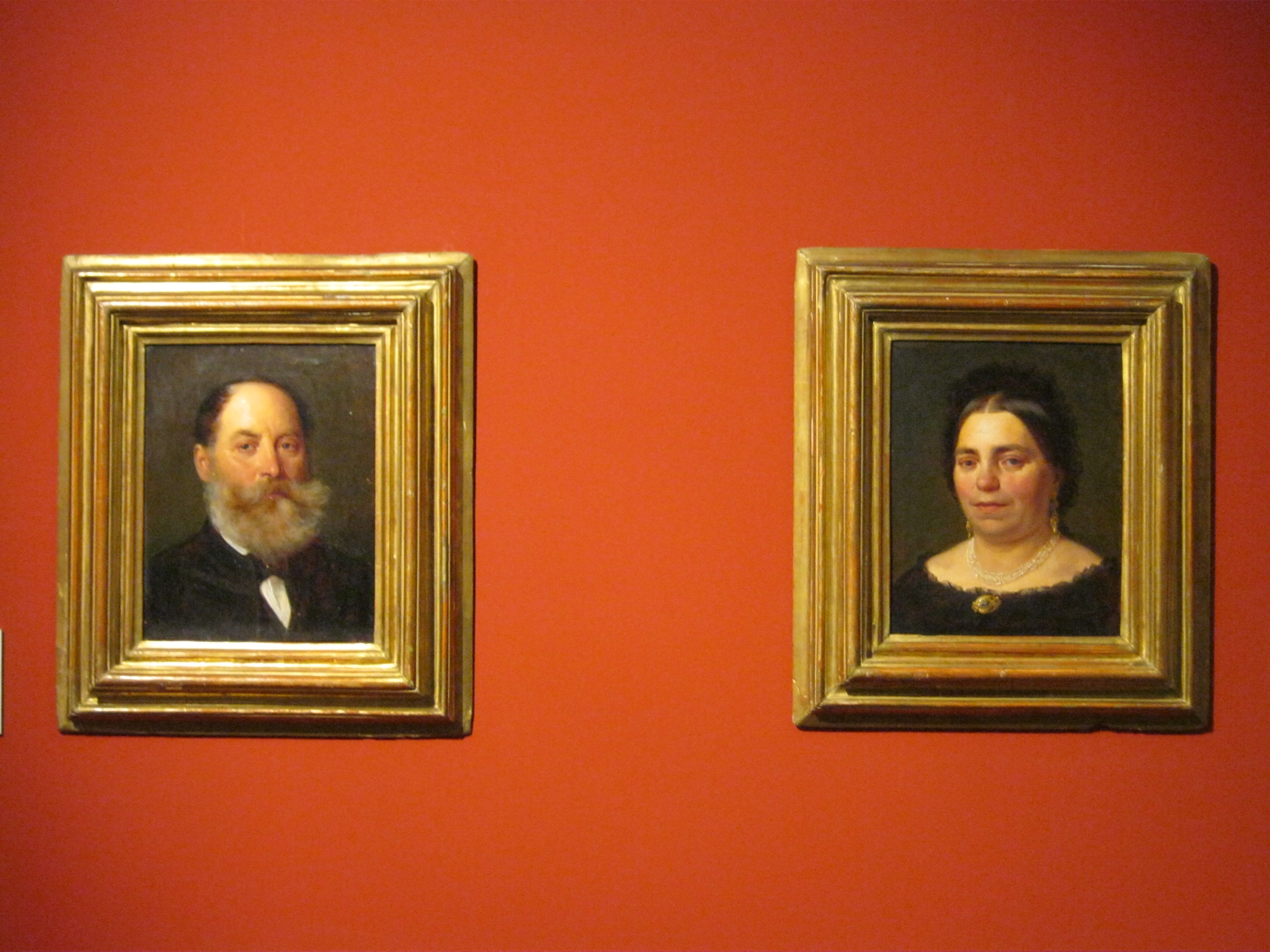 Nyilvános 1081 | 1574 | Nyíregyháza, Benczúr tér 21. Jósa András Múzeum | Magyarország egyik legrégibb múzeumát Dr. Jósa András alapította 1868-ban, akinek ma nevét viseli. A képen Benczúr Gyula emlékszobájának részlete. A nagy magyar festőművész 1844-ben Nyíregyházán született (lásd: Nyíregyháza, Kossuth tér 8.), apja gyógyszerész volt. A képen látható festményeken a művész szüleit örökítette meg. Felh. irod.: Látnivalók Szabolcs-Szatmár-Bereg megyében. Miskolc, Well-PRess, 1999 http://jam.nyirbone.hu A fénykép 2010 augusztus elején készült. |