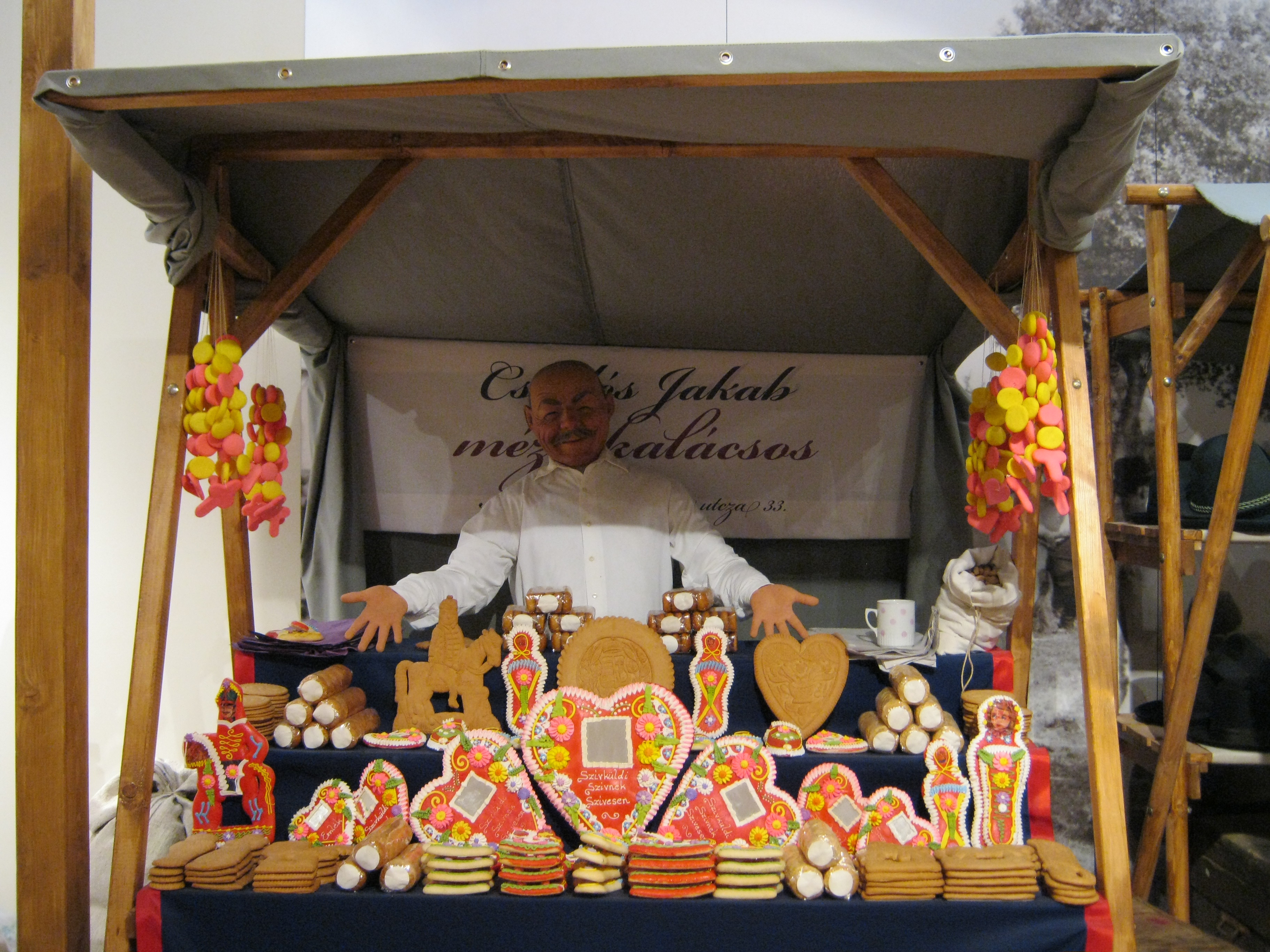 Nyilvános 1119 | 1563 | Nyíregyháza, Benczúr tér 21. Jósa András Múzeum | Magyarország egyik legrégibb múzeumát Dr. Jósa András alapította 1868-ban, akinek ma nevét viseli. Az állandó kiállítás színes részlete igazi vásári hangulatot idéz. A látványt a vásári nyüzsgés hangjai, az árusok rímes kínálgatása egészíti ki, teljes élményt adva a látogatónak. Felh. irod.: Látnivalók Szabolcs-Szatmár-Bereg megyében. Miskolc, Well-PRess, 1999 http://jam.nyirbone.hu A fénykép 2010 augusztus elején készült. |