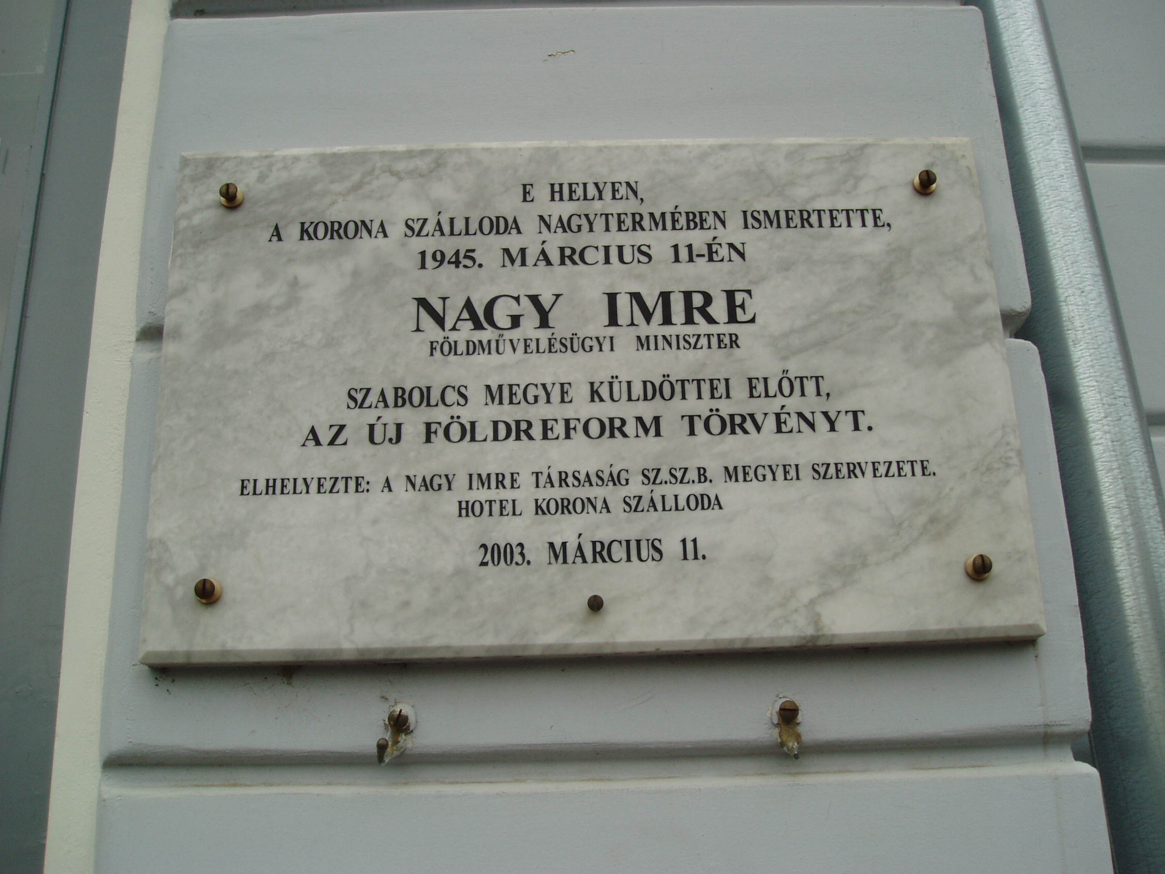 Nyilvános 1054 | 1481 | Nyíregyháza, Dózsa György utca 1. Korona szálló | Az eklektikus stílusú szálloda Nyíregyháza központi terének fő ékessége. 1895-ben épült Alpár Ignác tervei szerint. A neves budapesti építész több épületet is tervezett a városnak: az evangélikus elemi iskolát, a megyeházát és a szállodával majdnem egyidőben épült színházat (lásd: Nyíregyháza, Bessenyei tér 13.). A Korona nagyterme Nyíregyháza életében fontos szerepet játszott. Több jeles eseményt emléktábla örökít meg a homlokzaton. Felh. irod.: Látnivalók Szabolcs-Szatmár-Bereg megyében. Miskolc, Well-PRess, 1999 Margócsy József: Utcák, terek, emléktáblák [1.] Nyíregyháza, Városi Tanács – Bp., Közgazd. és Jogi Kiadó, 1984 A fénykép 2010 augusztus elején készült. |