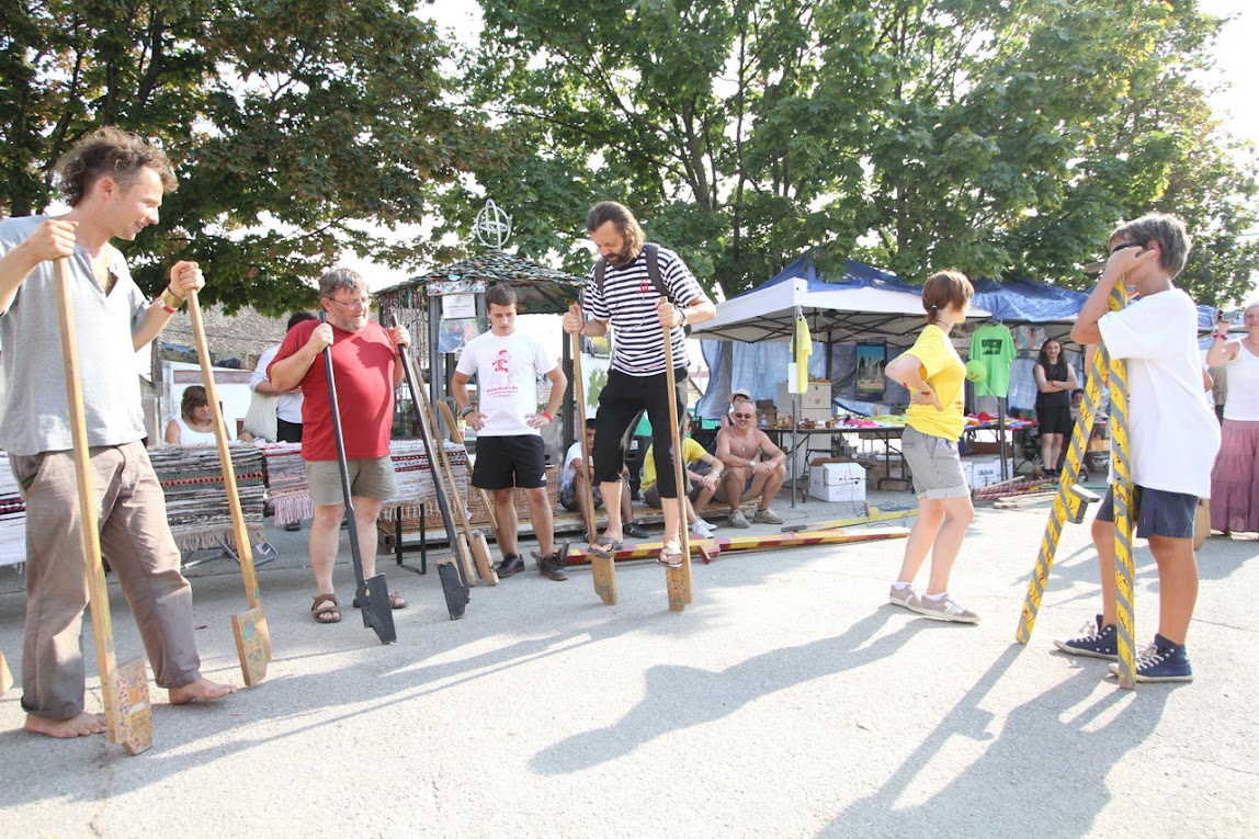 Nagykanizsai Gólyalábasok Ördögkatlan Fesztivál 2012 Bérczes László fesztiváligazgató is megtanult gólyalábazni.jpg