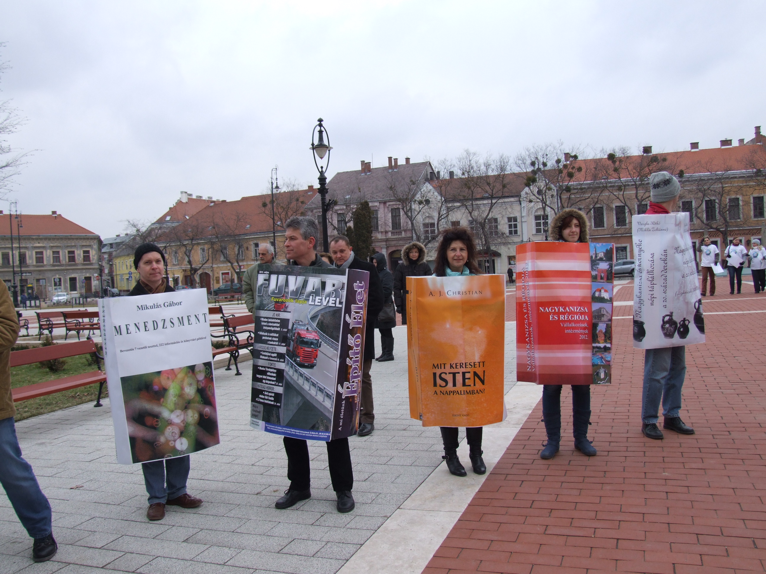 Nyilvános 1069 | 1402 | 2013. február 9. A farsangi fánkfesztiválra készülve felhívásban kértük olvasóinkat, hogy öltsék magukra kedves könyvüket. Egy „könyvespolcnyi” jelentkező vette magára kedves olvasmányát, az ő vonulásukról készültek ezek a képek. A környezetükben néhol láthatók a Nagykanizsai Gólyalábasok, akik szintén a könyvtárhoz kötődnek. A „felvonuló kötetek” a könyvtár épületében még megtekinthetők. | |