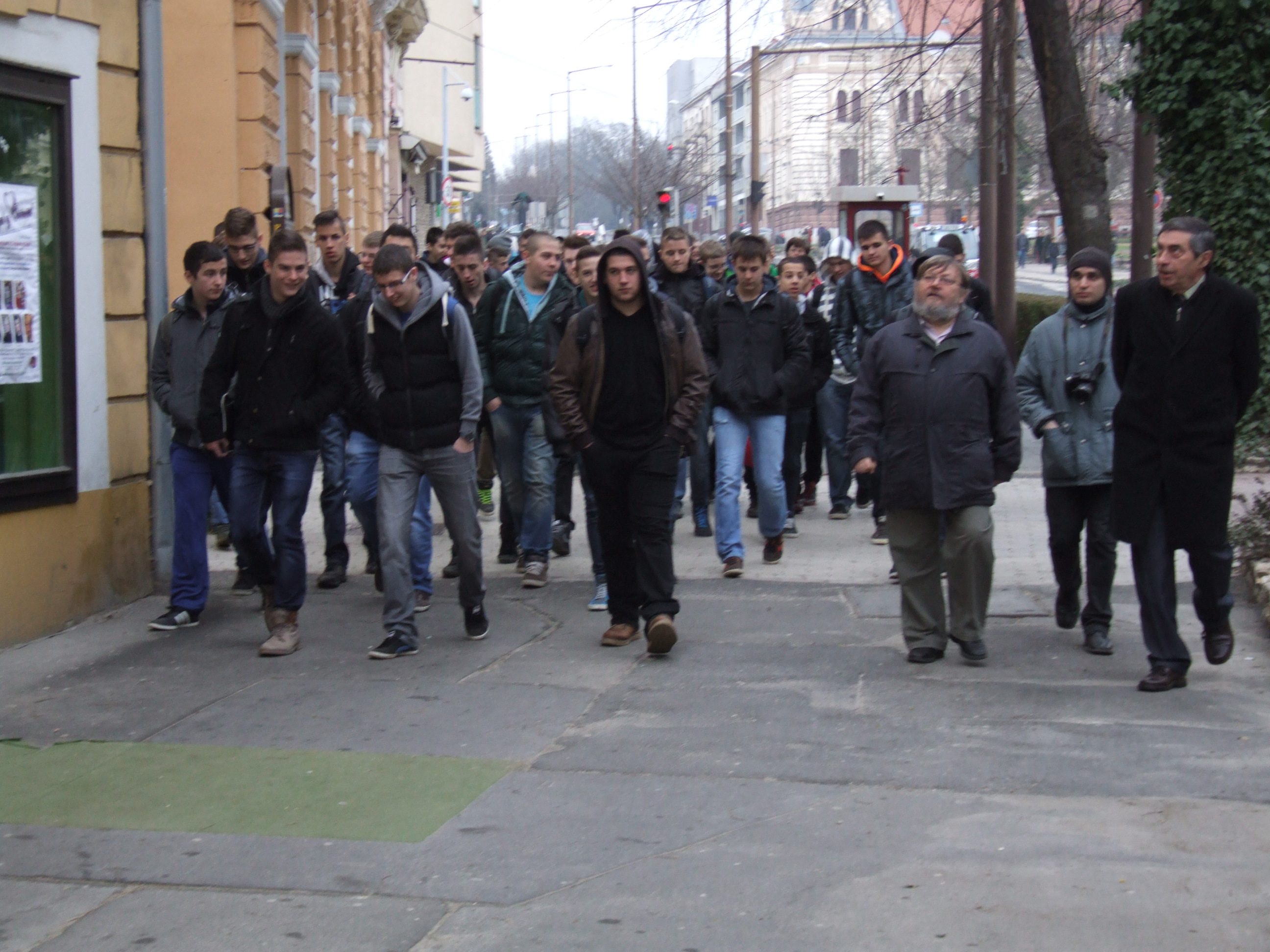 2014.03.03. Cserháti iskolások (10.b) a Városházánál 01.JPG