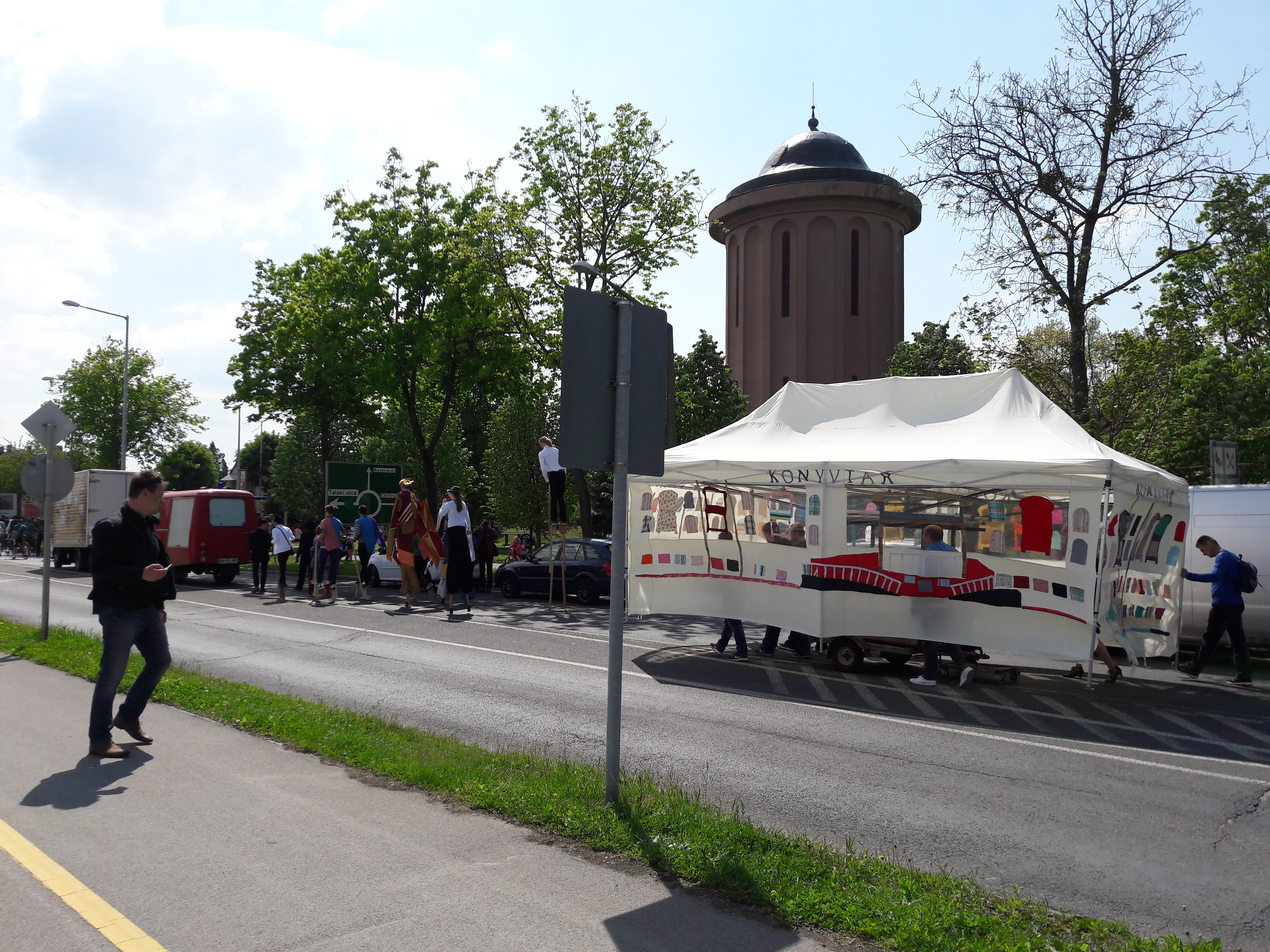 2017.04.30. Utca Tánc Fesztivál - Vonulás - Gólyalábasok, fekete kalapos táncosok, meridián tornások