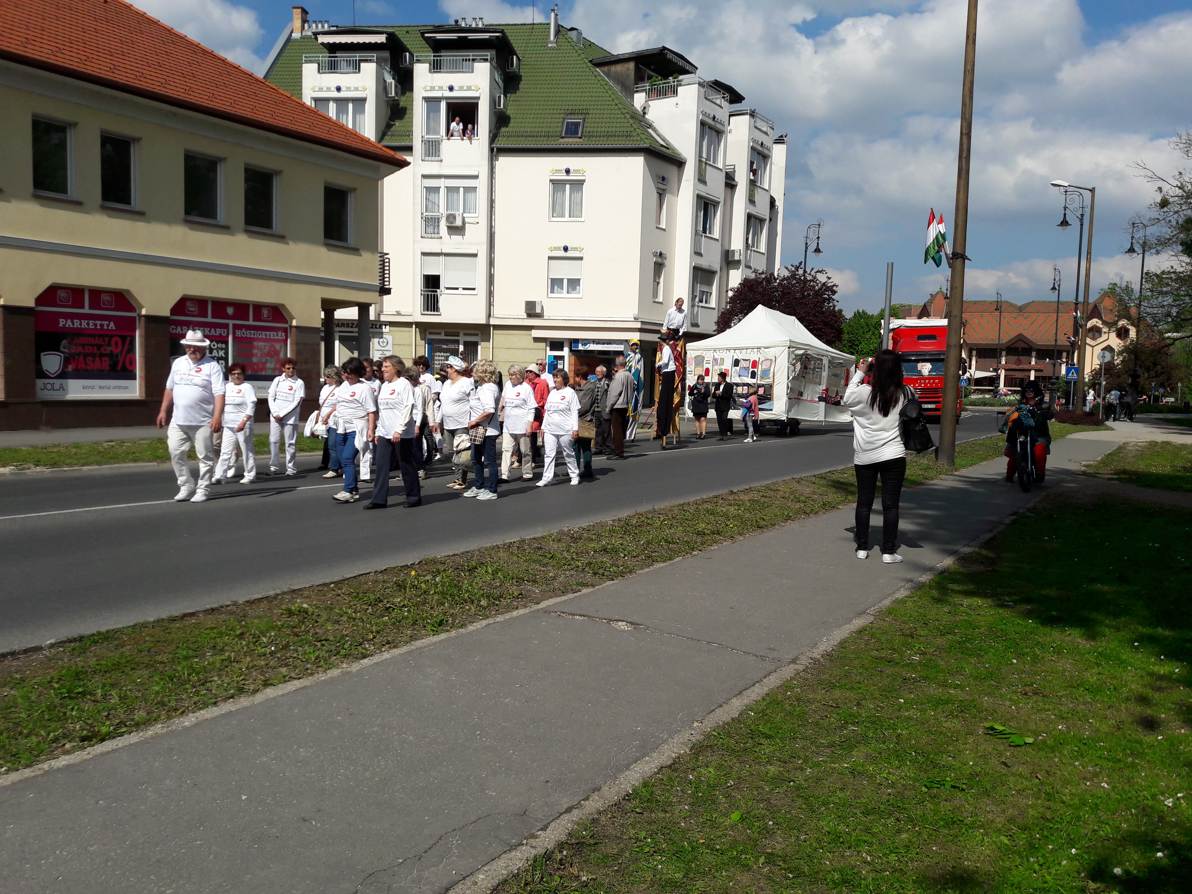 2017.04.30. Utca Tánc Fesztivál - Vonulás - Gólyalábasok, fekete kalapos táncosok, meridián tornások