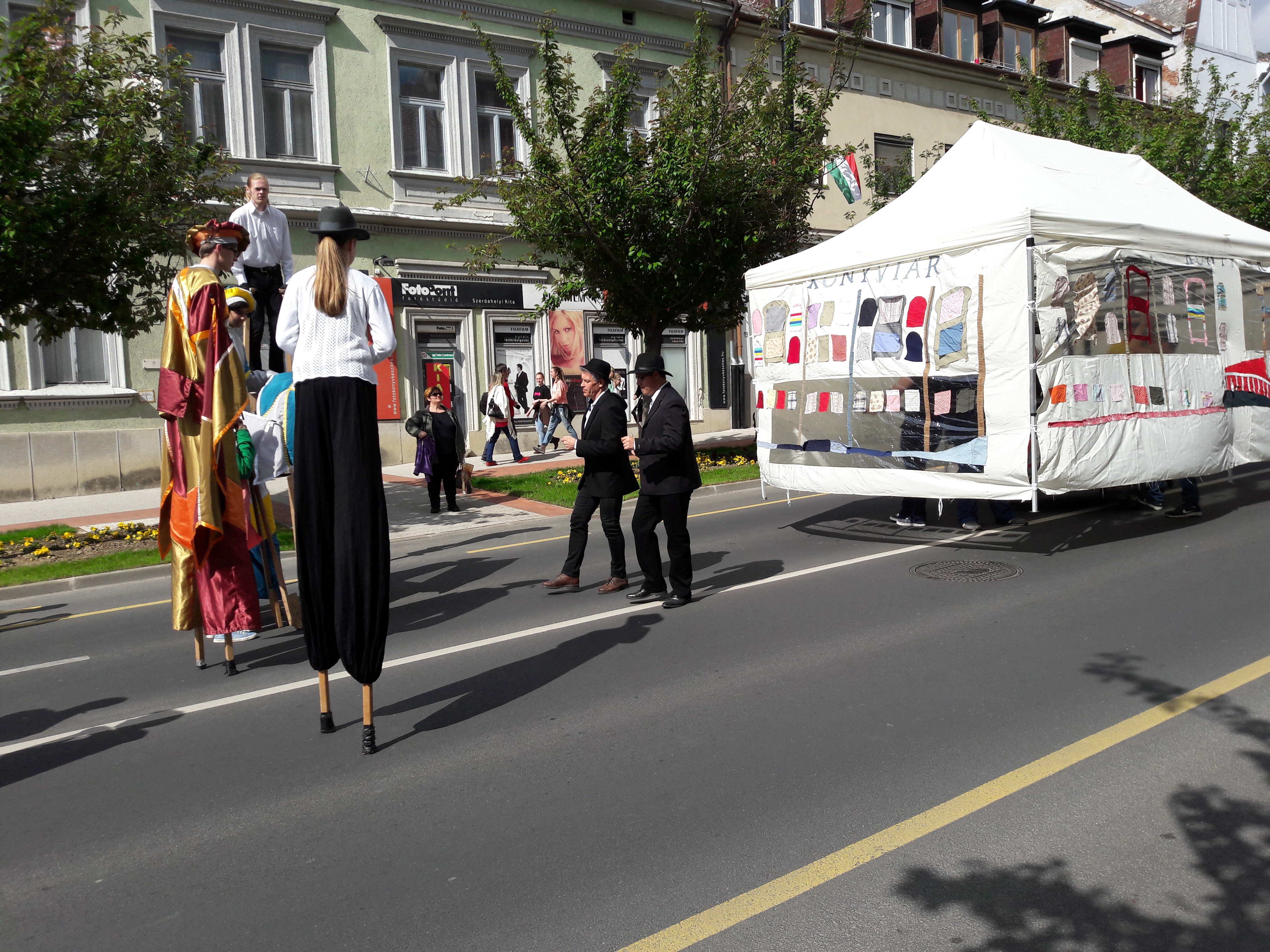 2017.04.30. Utca Tánc Fesztivál - Vonulás - Gólyalábasok, fekete kalapos táncosok, meridián tornások