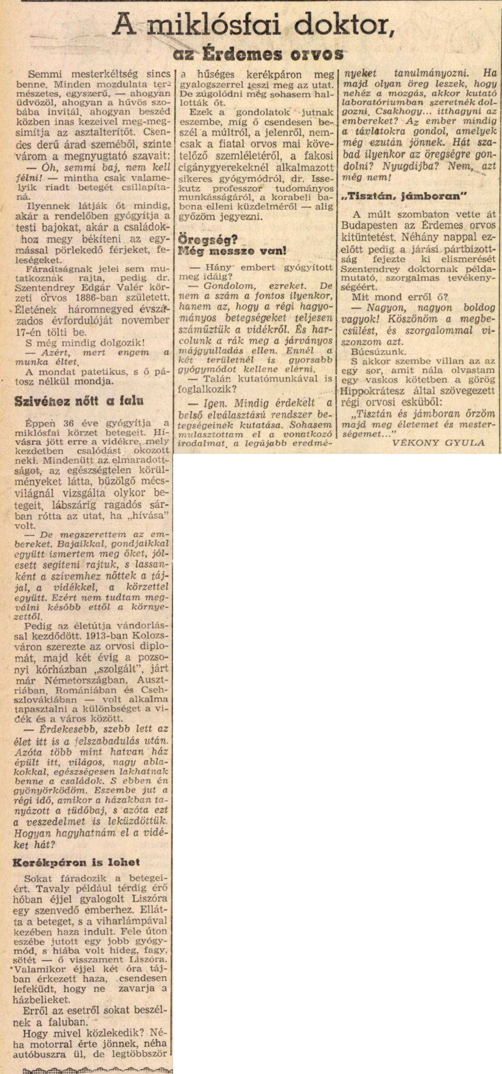Zalai Hírlap 1961. július 9. 8. oldal A miklósfai doktor ...