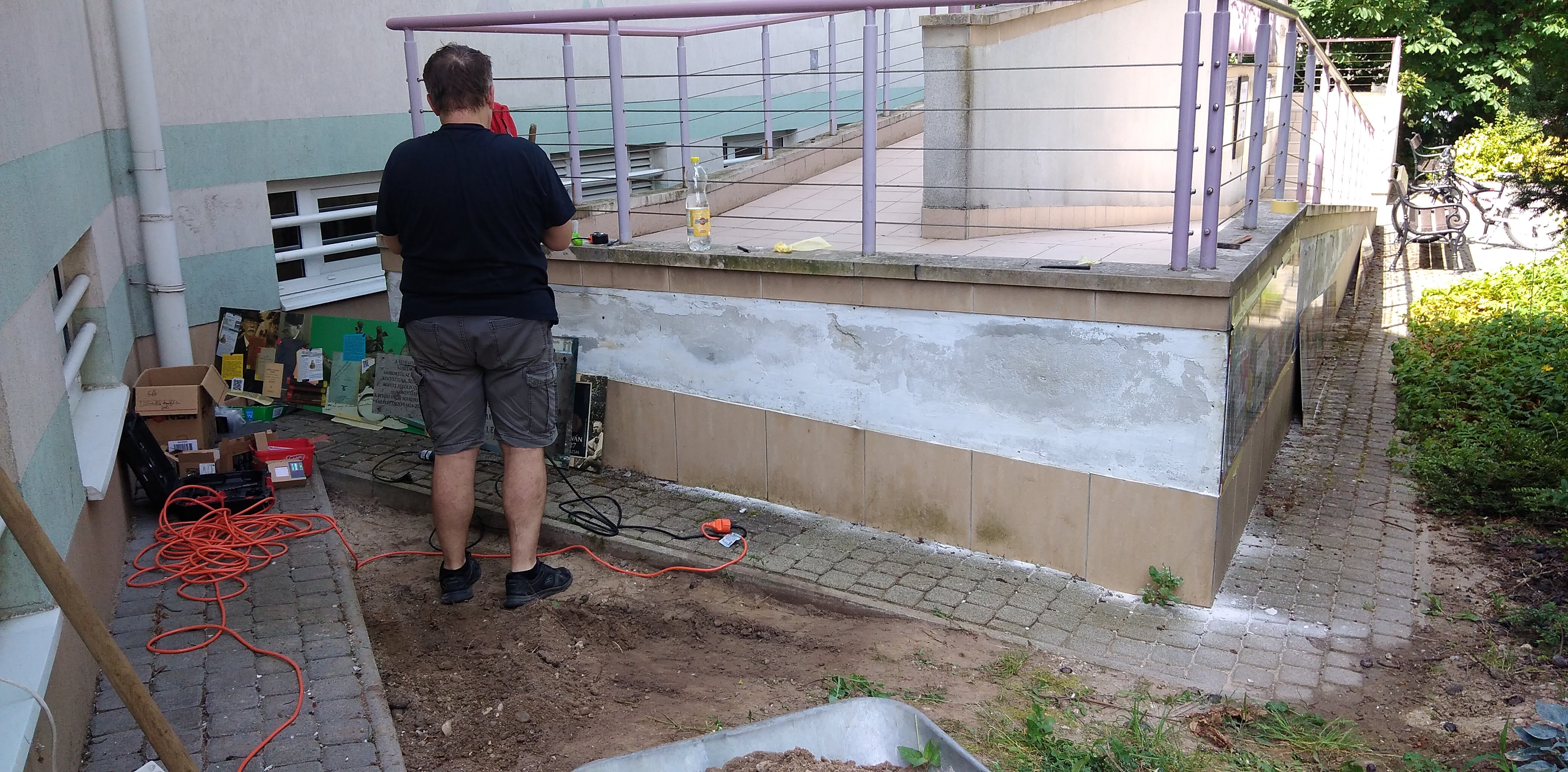 2023.06.26. Könyvtár rámpa freskó felszerelése, kavicsok meghozatala